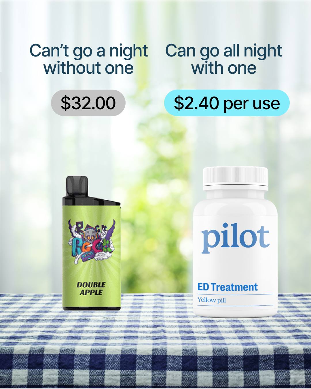 Compare the cost of erectile dysfunction treatment to items that our audience actually spends money on. The more rogue the comparison, the better.